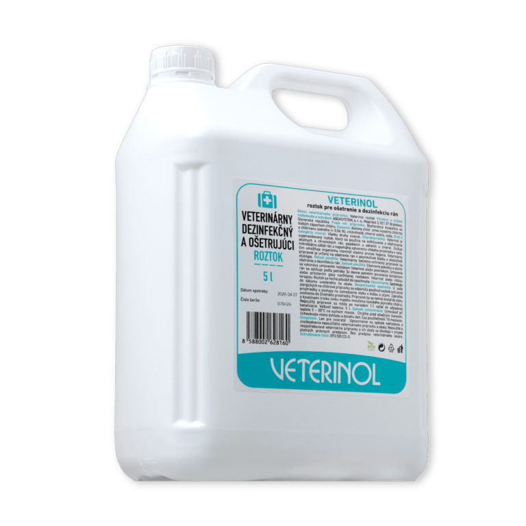 Dezinfekčný a ošetrujúci roztok, urýchľujúci hojenie veľkých i malých rán, škrabancov, popálenín, či infekcií. Výhodné 5 litrové balenie pre častých užívateľov: veterinárnych lekárov, chovateľov a farmárov.
