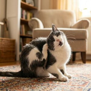 Parazity narúšajú pokožku a vedú k podráždeniu a jej poškodeniu a sekundárnym infekciám. Častou formou je ušný svrab, pri ktorom si mačka intenzívne škriabe uši a môže sa objaviť začervenanie či zápal.