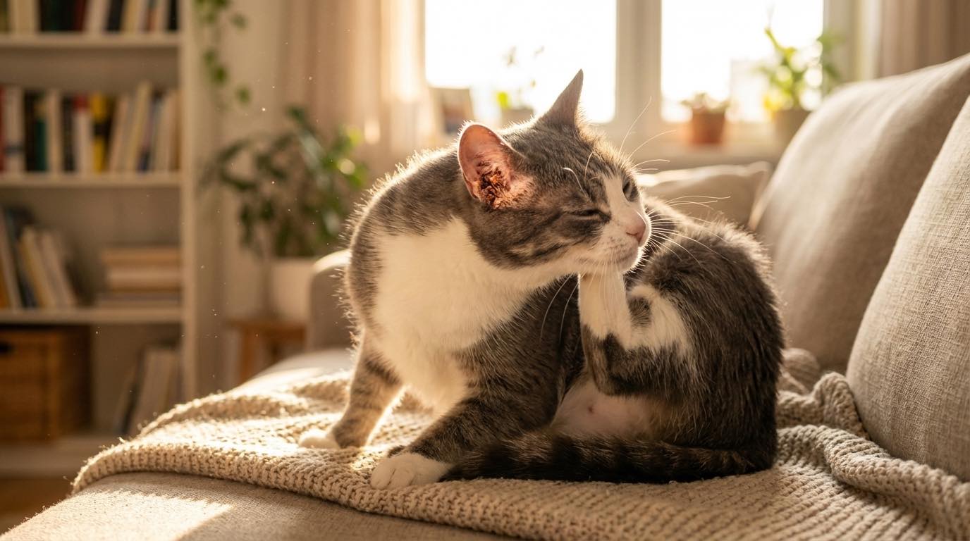 Mačací svrab je nepríjemné kožné ochorenie, spôsobené parazitom Sarcoptes scabiei. Sprievodnými znakmi sú silné svrbenie a výrazná nepohoda zvieraťa.